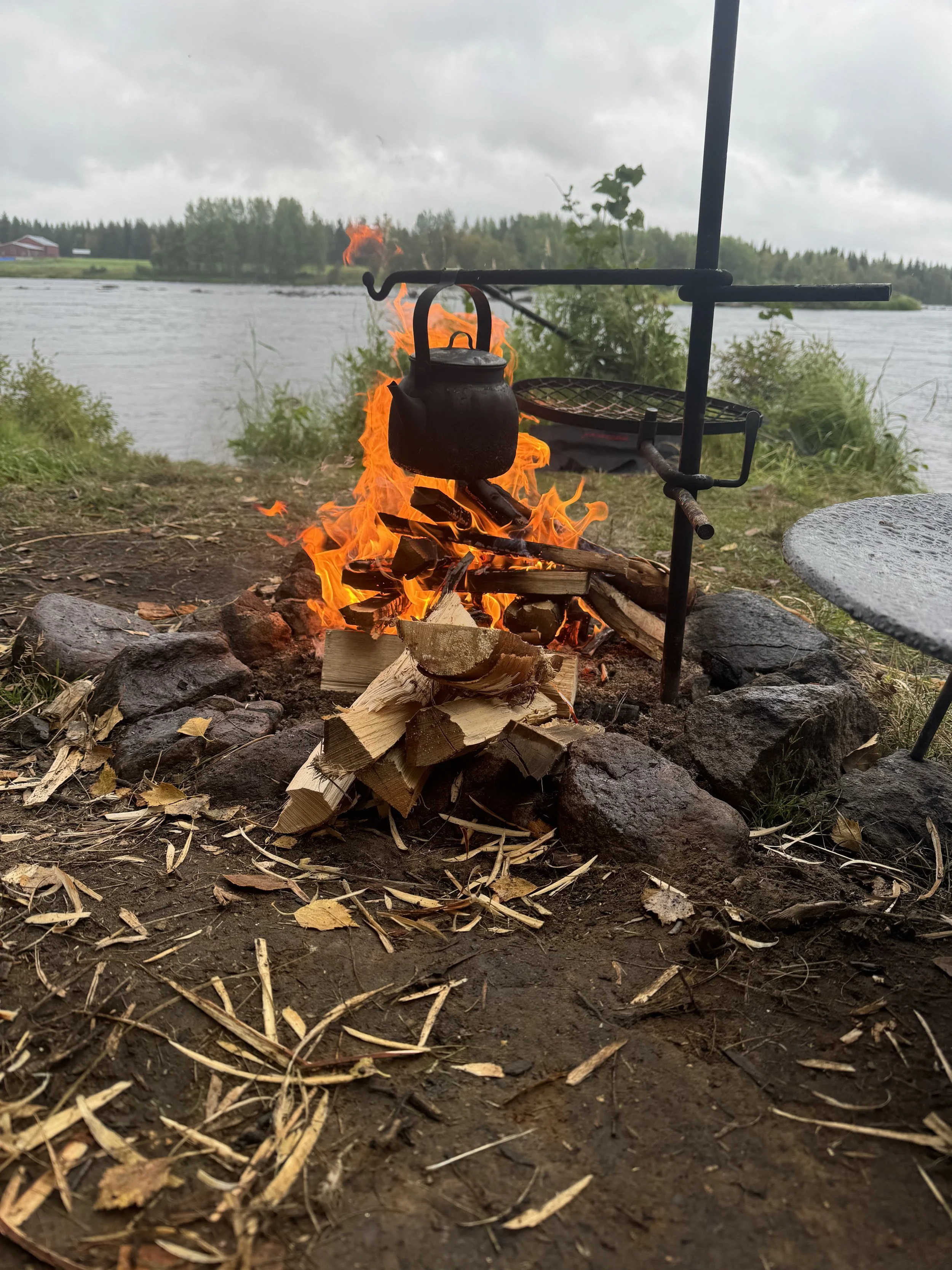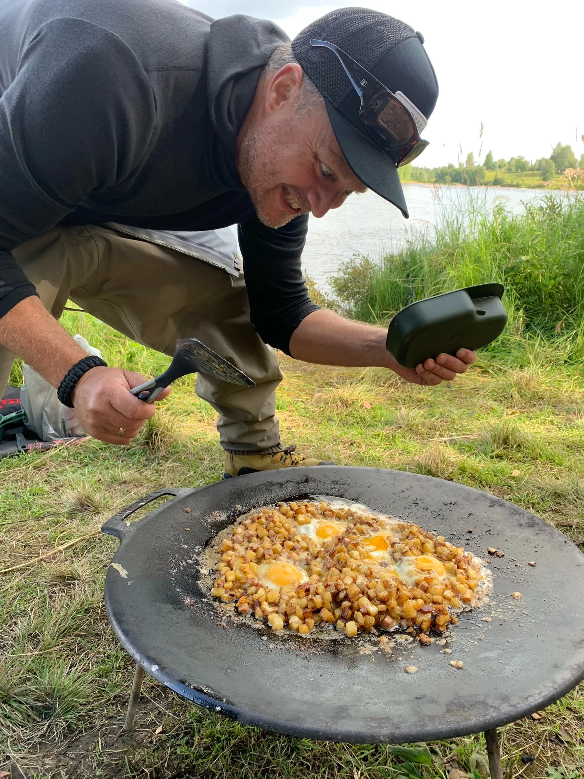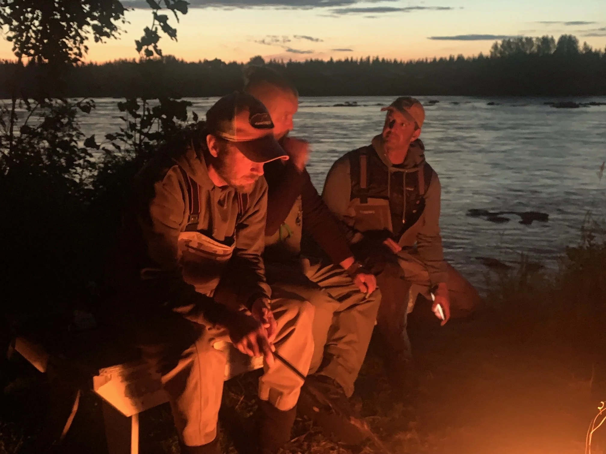 With the fire burning in the background and the smell of the good food prepared over the fire Tomas was the first to get in contact with a fish.