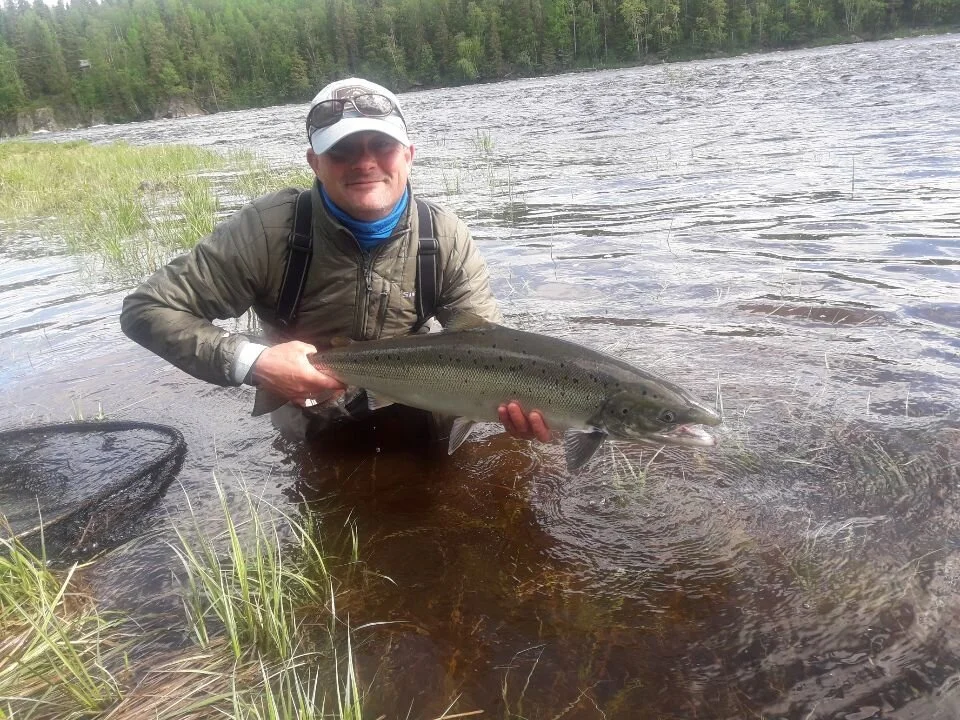 The Danish crew came to the lodge on Sunday and were really looking forward to the week. They got ready, and fished hard the first few days, but the sunny weather had made the fish a bit inactive, but then the water started to rise and the salmon started to show.