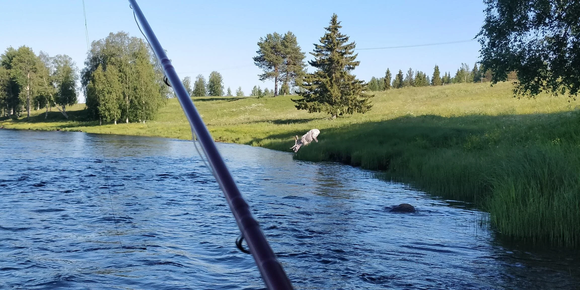 Christofer lost two fish at Savikuoppa, one of them gave him a good fight, then a strong head shake and it was gone. One of them was from the strong current, 100m run with full brake and then the backing broke. Remember to check your gear.