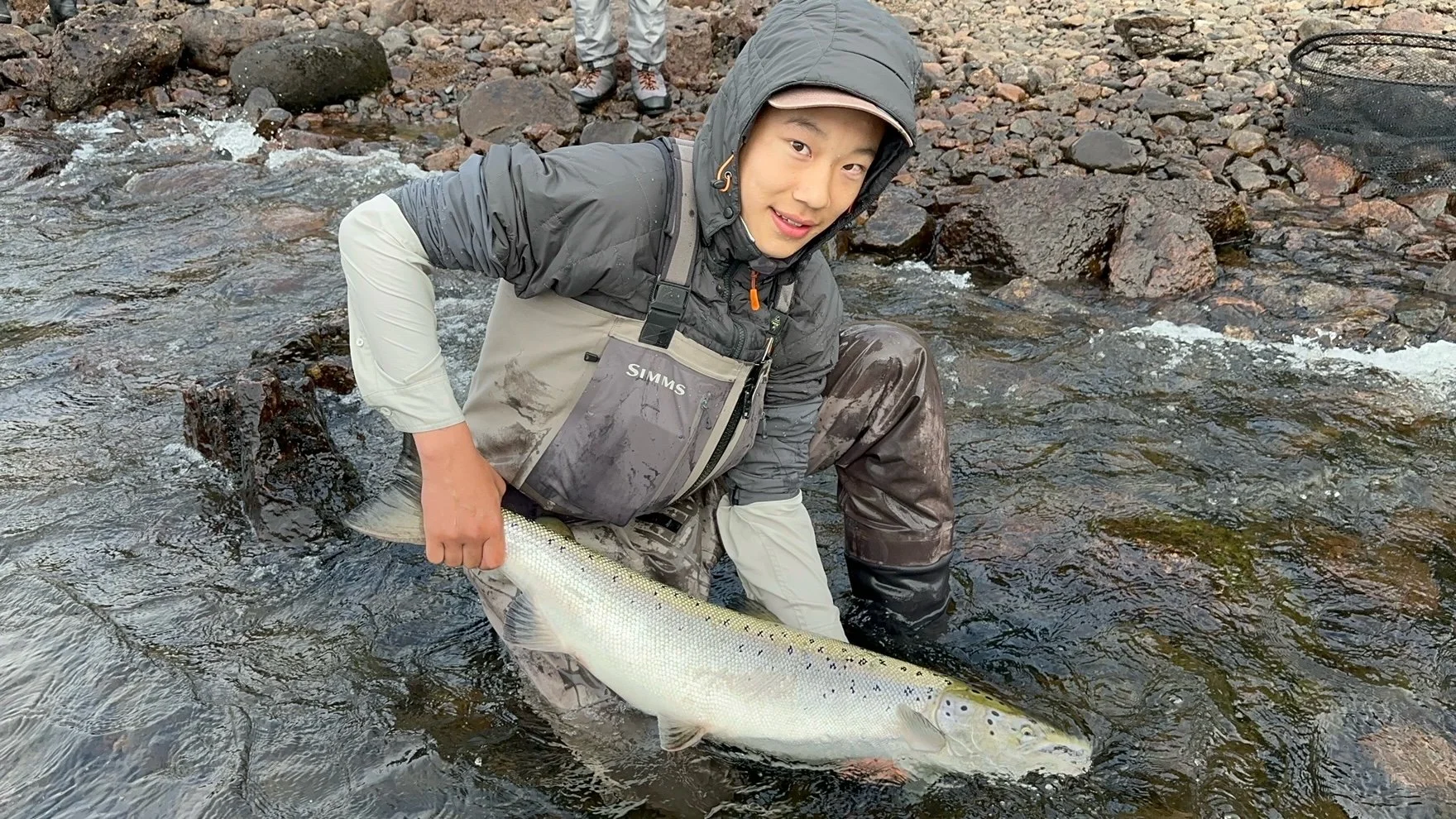 And of course Oscar landed another salmon here at Kengis Bruk. He is starting to be a young Kengis salmon star, with fish landed every time he visits us.