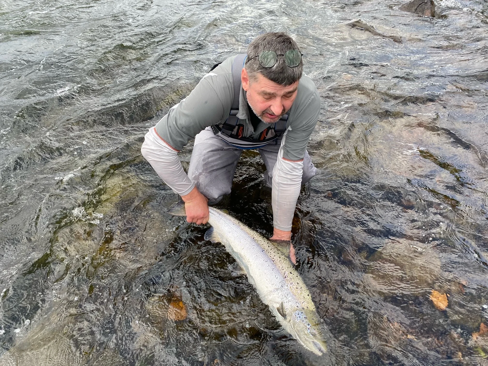 At Kengis Bruk we have close to a 100% catch and release rate. All fish are fought hard and fast netted and taken well care of before letting them back. We are very careful with the first big fish that enters our river, because we know how important they are for the river. When we can't say a 100% rate is it because we will take a fish that is sick or hurt if we catch one of them.