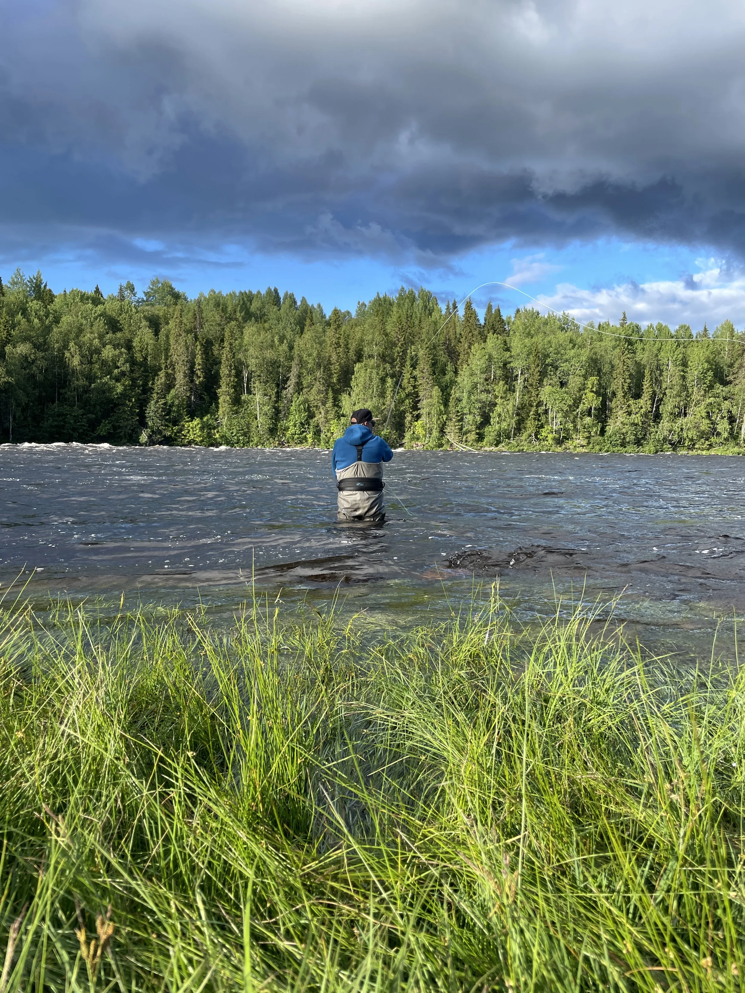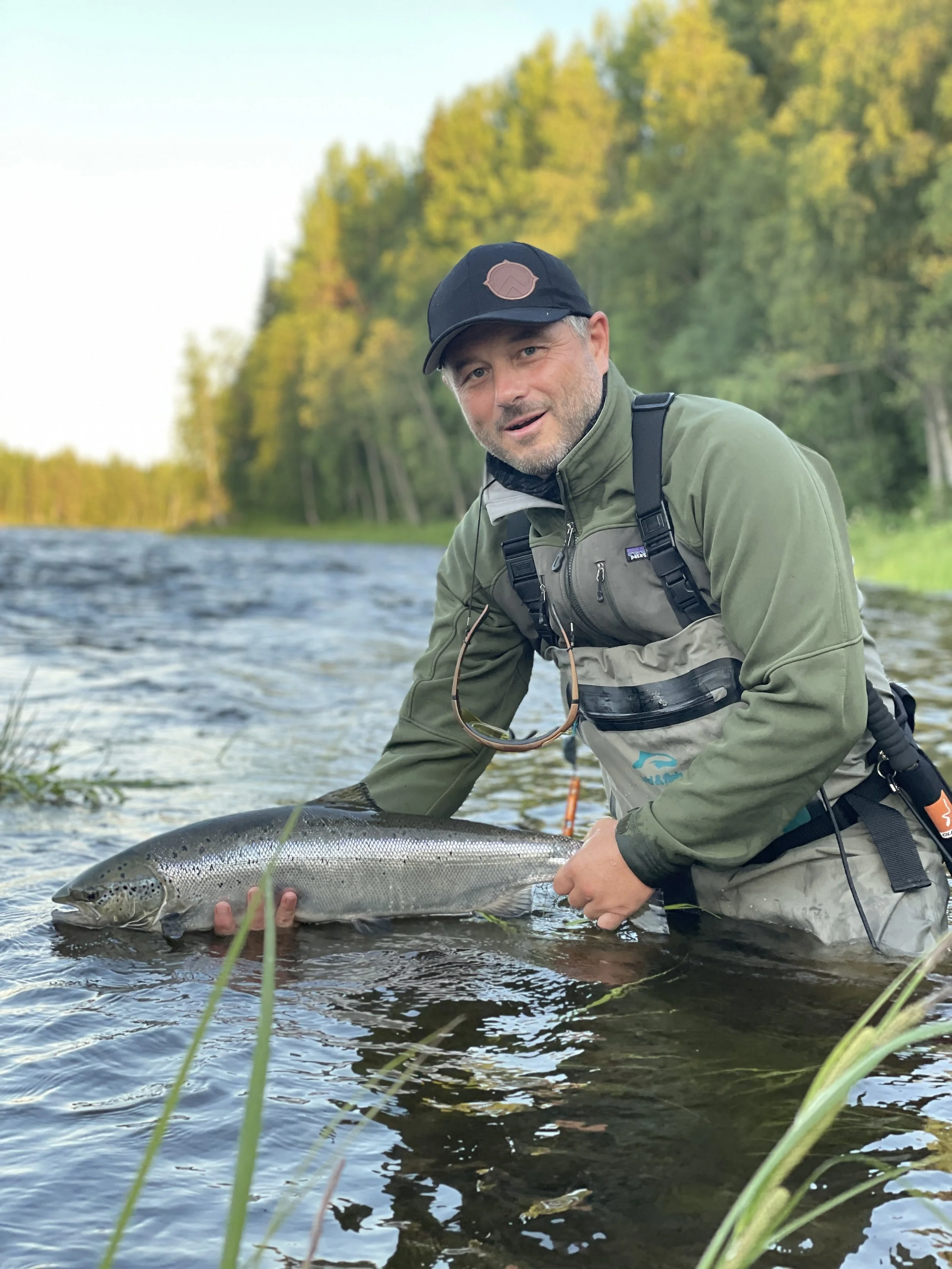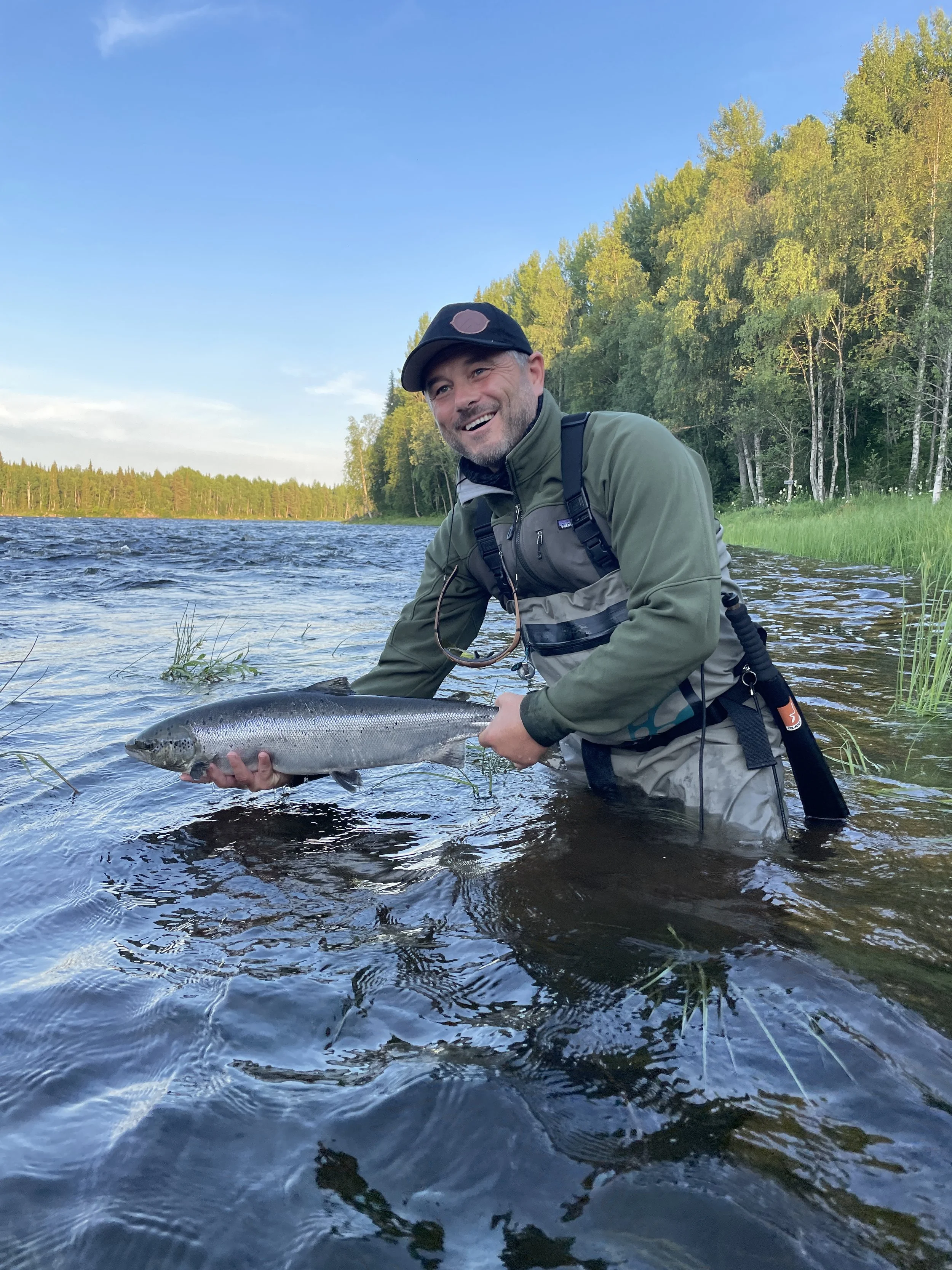 After a good dinner we went back to Kengis to continue our search for the baltic salmon. And what better way to end you celebration day with a salmon. Just a few cast into his run in Island pool, Frantz hooked into another fish.