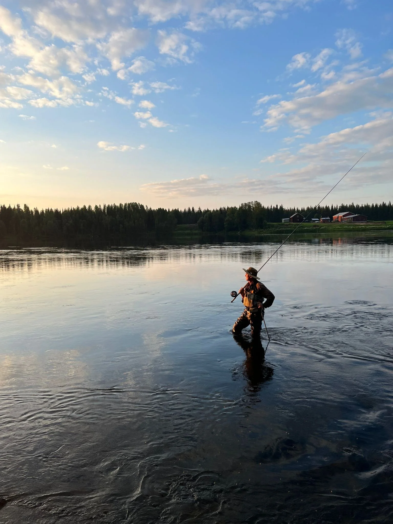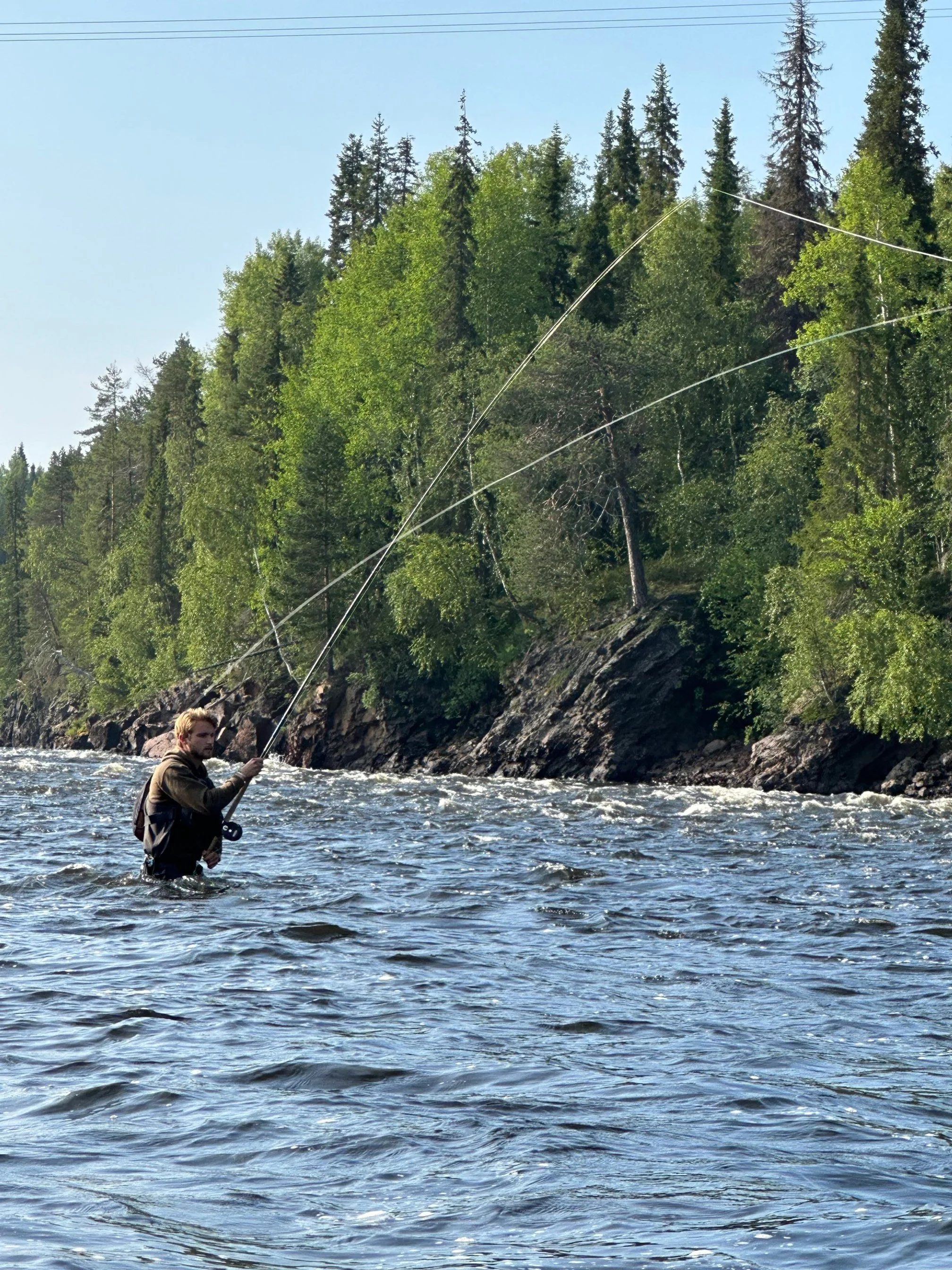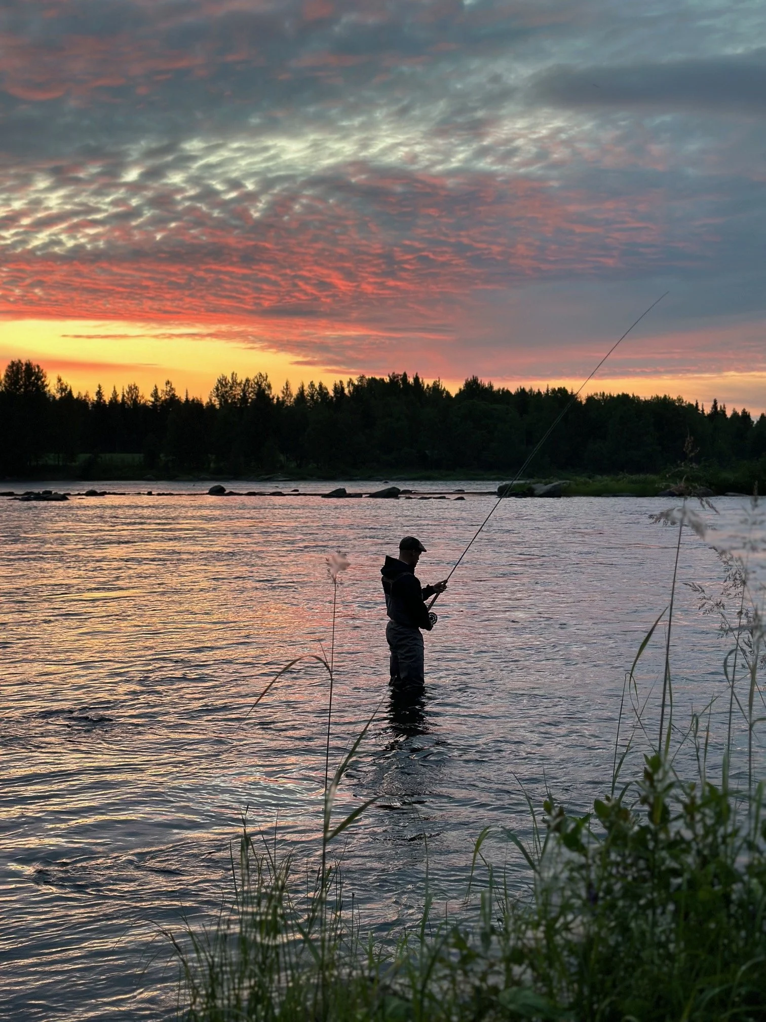 Last time Simon visited Kengis we had a difficult week, and so was this last week. Sunny weather coming to the northern parts of Sweden is not making baltic salmon fishing any easier, but Simon did all he could and with long cast and the fly in the water all night he showed the real Kengis feeling and we look forward for his return and we cross fingers that next time he will get in contact with one of the strong baltic salmon.