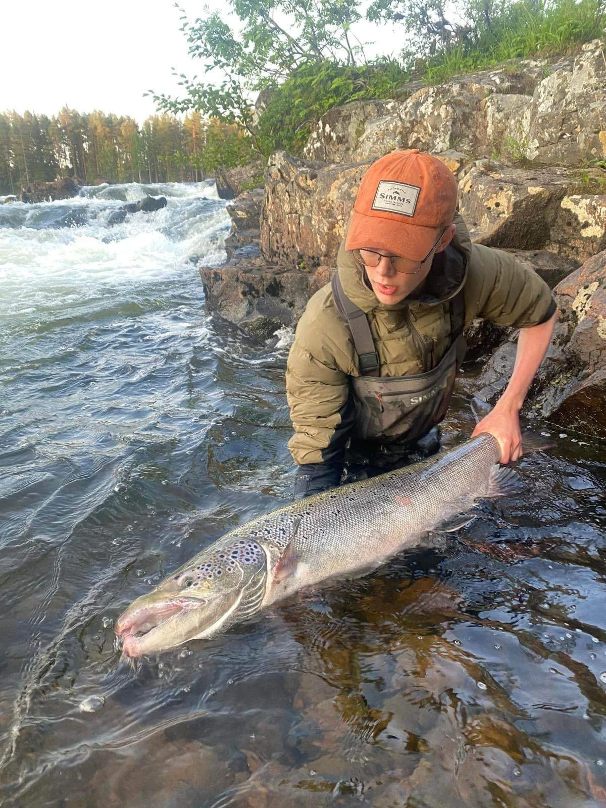 Erik landed one of the mighty Torne river salmon and the biggest fish caught by a guest in many years from Kengis Bruk. 119,5 cm monster baltic salmon. No words can really describe this. A good mix of luck and skills from Erik made him land his fish of a lifetime at Kengis Bruk. To hear him tell the story and to see his father proud of his son is worth everything and we are happy to be a part of that story.