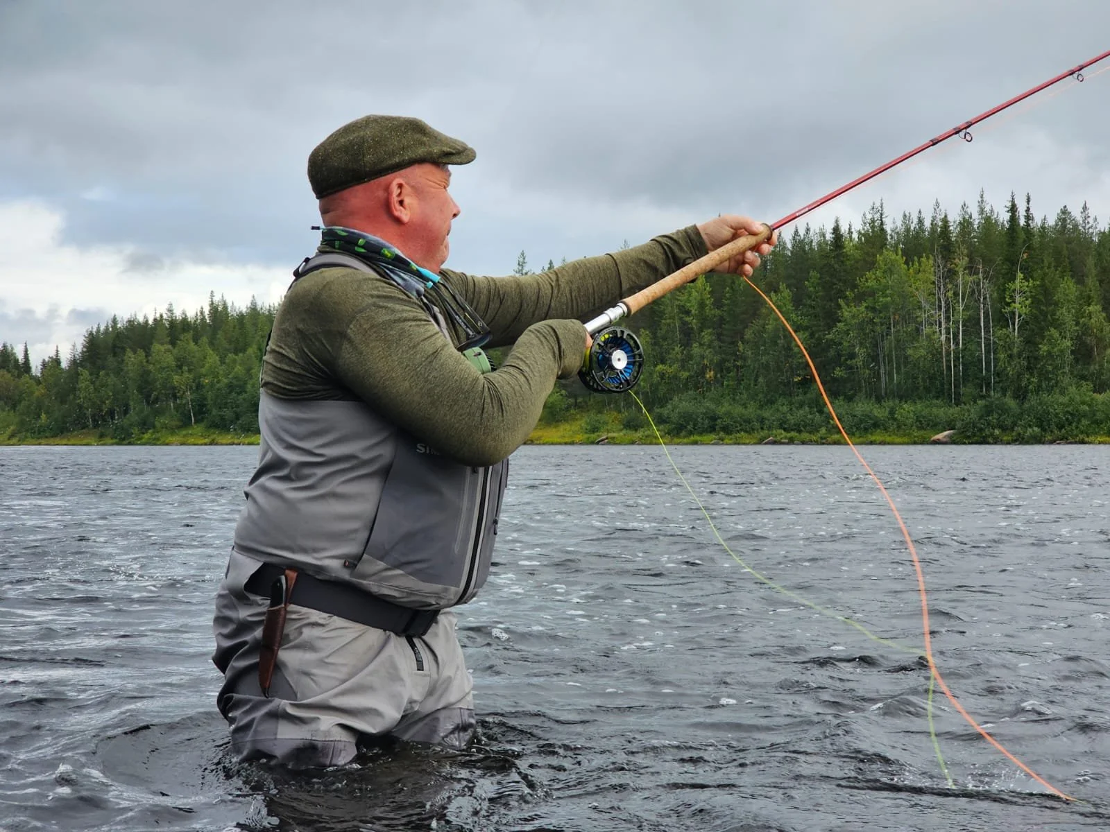 Back at Kengis Bruk, Michael had a memorable round at Zone 1 once again. In between the other fishermen a good sized heavy august fish striked his fly and he got to test his backing. The fish went around a stone and he needed to use all his experience to land the fish. Now there was no doubt; He would be this week's king of salmon.