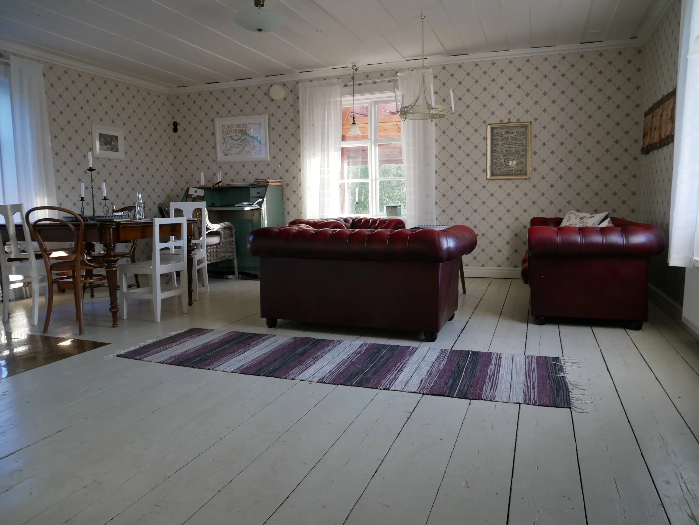 There is a big living room with dinning area, fly tying corner, lounge area, small fly shop and souvenirs.